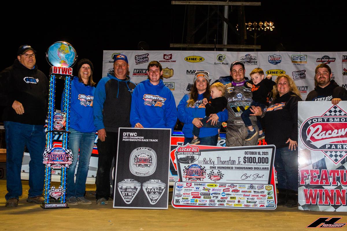 Ricky Thornton Jr. claimed his first-career Super Late Model crown jewel win on Saturday night at Portsmouth Raceway Park. Surging late in the race Ricky scored the $100,000 win in the 41st annual General Tire Dirt Track World Championship aboard his No. 20RT Dyno One Inc./ Excel Floor Covering/ Sub-Surface of Indiana/ Longhorn Chassis/ Clements Racing Engine Super Late Model.