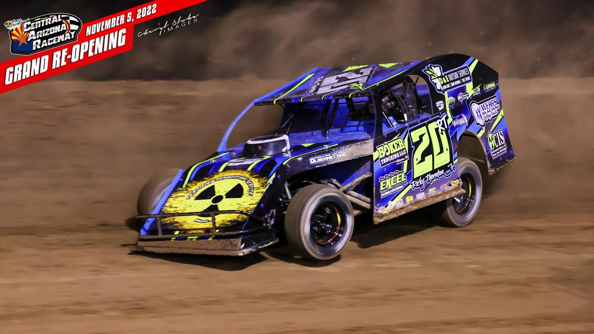 Saturday saw Ricky Thornton Jr. return to action aboard his Wehrs Machine No. 20RT Modified for the grand reopening of Central Arizona Raceway (Casa Grande, Ariz.).