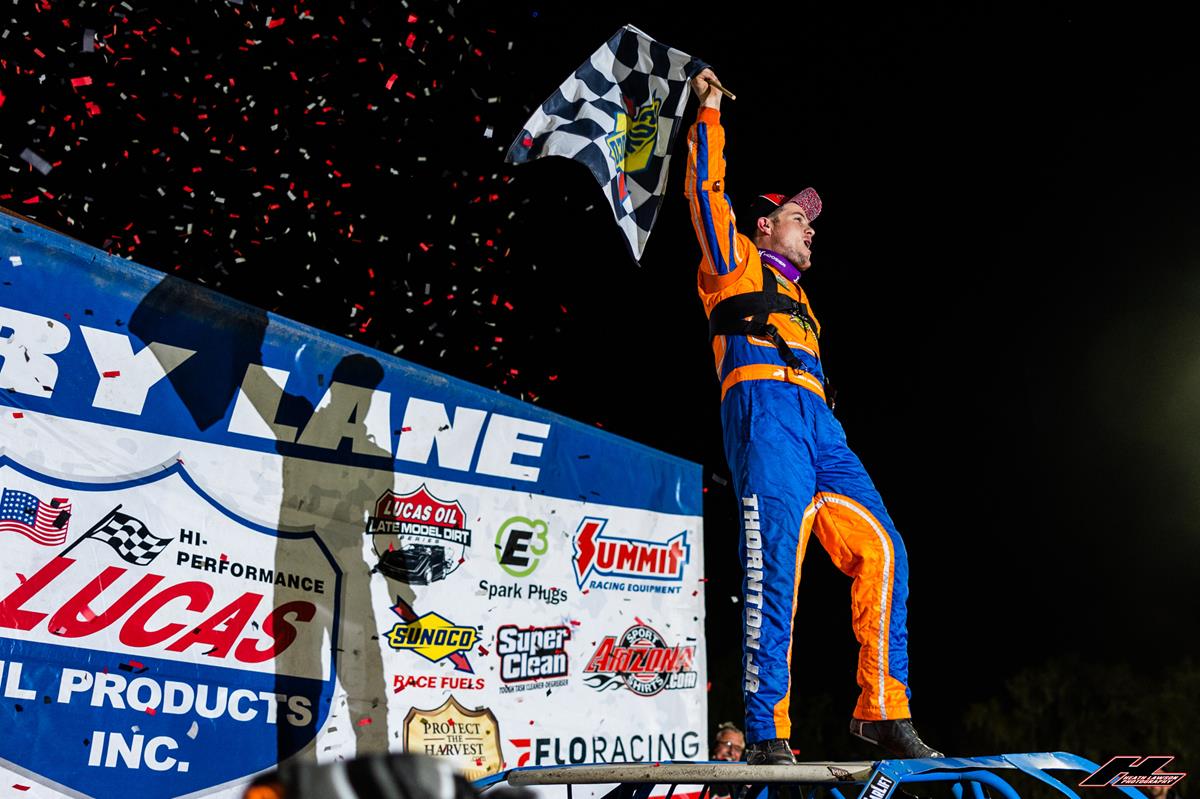Joining a stacked field of 48 LOLMDS entries on Friday at All-Tech Raceway (Lake City, Fla.), Ricky topped his 25-car group in time trials before picking up a heat race victory. Leading flag-to-flag in the 50-lap feature, Thornton steered to his 31st career LOLMDS victory ahead of Devin Moran, Hudson O’Neal, Tyler Bruening, and Jimmy Owens. The $10,000 triumph marked his third win of the young 2024 season.