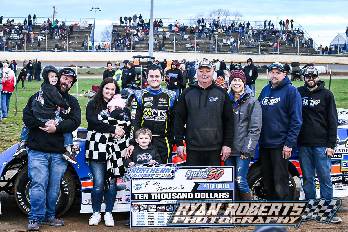 Leading flag-to-flag in the 50-lap feature, Thornton fended off Mike Marlar following a late restart to secure his second career Spring 50 triumph and his fourth win of the 2024 season. He earned a $10,000 payday ahead of Marlar, Josh Rice, Tyler Erb, and Jason Jameson.