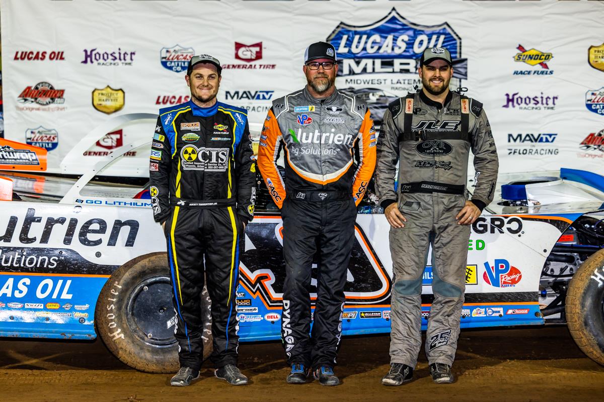 Following a second-place finish in his heat race, Thornton climbed five positions in the $7,000-to-win, 30-lap opener to place second, chasing Jonathan Davenport to the checkers.