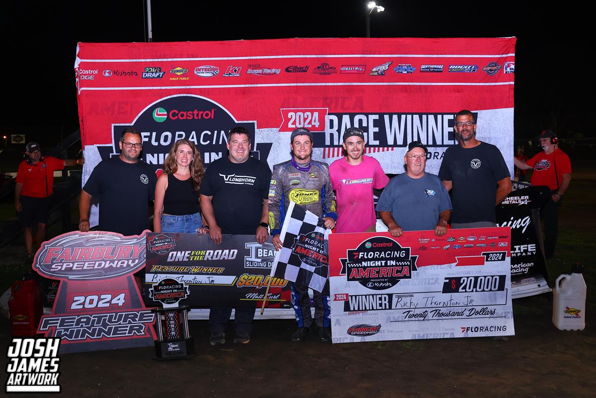 Beginning a two-week run with the team, Thornton Jr. surged from the 15th-starting spot to claim the $20,000 top prize in Castrol FloRacing Night in America’s One For the Road event presented by I-Beam Sliding Doors.