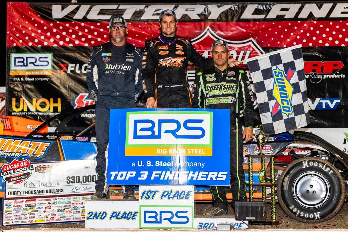 Shifting back to Late Model competition, Thornton rejoined his Koehler Motorsports team for the LOLMDS doubleheader at Lernerville Speedway on Friday and Saturday. He advanced to the Hillbilly Hundred A-Main via a heat race win, then led all 100 laps on Saturday to claim his 21st victory of the season and a $30,000 payday, fending off a hard-charging Jonathan Davenport.